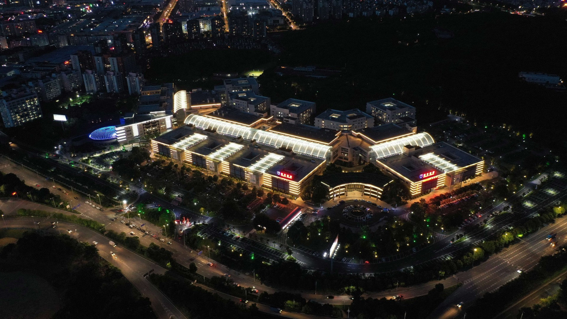 ▶ 项目描述:夜色之中,明晃晃的灯光,点亮了东莞夜空,也点亮了人们心中的希望。项目运用线条灯、洗墙灯、点光源等灯具进行组合,将建筑物的立面造型、材料质感和装饰细节有效地转化为光影视觉,凸显出建筑形象在夜间的无限可能,使城市的夜景得以艺术般的美化,同时提高了医院知名度,辅助构造良好的现代化、科技化印象。